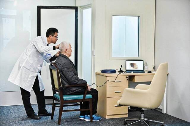联影的听力专家们切实关怀长辈们的听力健康状况,以专业的医疗级测听服务为泰康之家·蜀园的老人们进行全方位的免费听力健康检测。