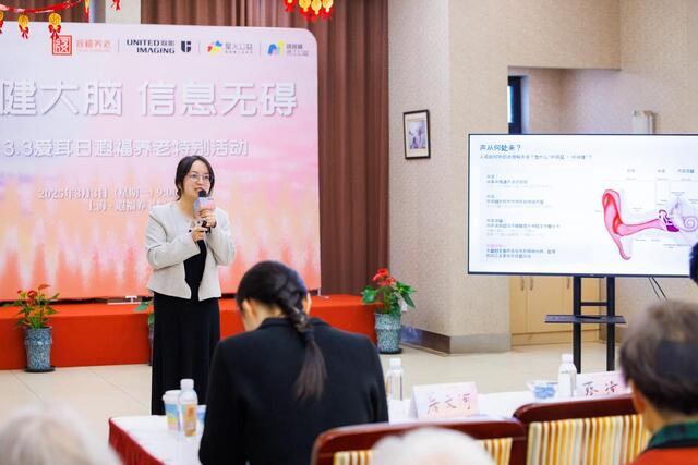 联影微电子临床听力专家屠文河在现场进行了主题为《听力衰退与脑认知功能共管》的公益演讲,强化老年群体对听力和脑健康的认知与重视。